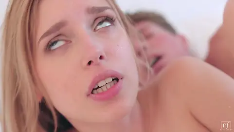Cock loving Freya Mayer seduces her love in the kitchen before relocating to the bedroom for a slippery pussy pounding