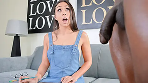 Lilly Hall has been into painting lately, and just recently booked a live nude model to capture on canvas. Lilly knew she would be seeing a naked man today, but no way no how did she expect to have a buff black guy with huge dick right in front of her face! She could barely focus on his form and could only think about getting her pussy impaled by that huge fleshy black rod of his.