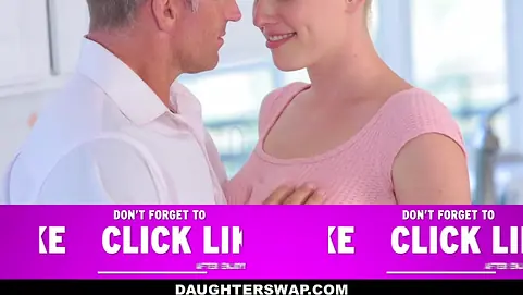 Horny beauteous bad little daughters Dolly and Riley swap each others father to get their hairy tight twat banged at the same time.