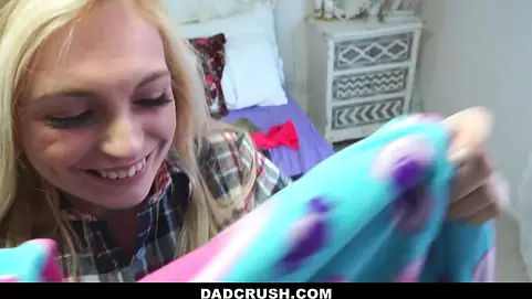 Can I sleep in here with you tonight stepdad? I'm having nightmares. Come closer to me! It helps me sleep better ;) I feel your boner hehe. You can maybe stick it inside of me and that will get rid of it. Go on, give it a try!