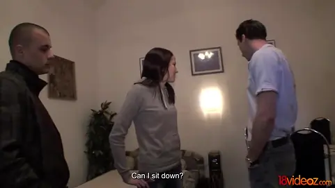 For this chick fucking some stranger for money is an experiment, but for her jealous boyfriend it's a real headache. He doesn't want to see his gf suck and fuck a random dude, but he has no choice cuz some heavy payments are due next week. That's how he ends up on this couch holding his honey's hand as she gives head and enjoys a hard fuck with the guy they met on Facebook. A mix of pleasure and suffering makes this scene especially exciting!