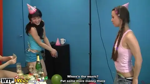 Naked college girls play with a huge dildo