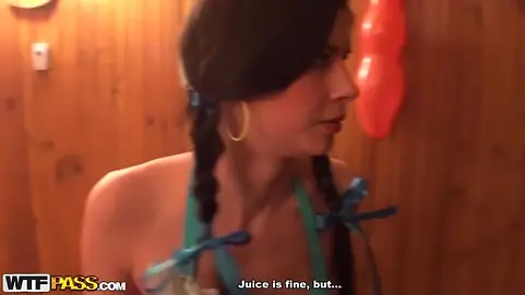 This awesome Hawaiian theme sex party took place in a sauna where all the nasty coeds had a blast