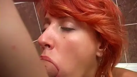 Sassy redhead performs hot student blow job